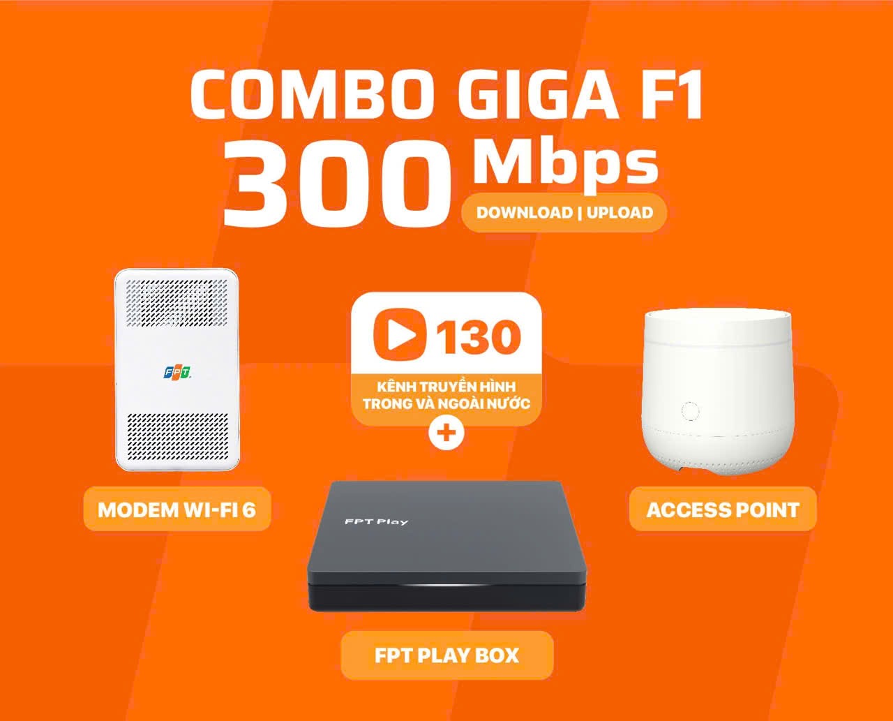 Gói Combo GIGA F1 FPT được ra mắt vào năm 2024 là gói cước được FPT cung cấp cho khách hàng có nhu cầu sử dụng 2 dịch vụ bao gồm Internet WiFi FPT và Truyền Hình FPT, với mức giá kết hợp 2 dịch vụ sẽ rẻ hơn rất nhiều so với bạn đăng ký đơn lẻ, rang bị thêm 1 thiết bị Access Point nhé. Cùng FPT WiFi tìm hiểu sơ bộ về gói cước Combo GIGA F1 FPT này nhé.